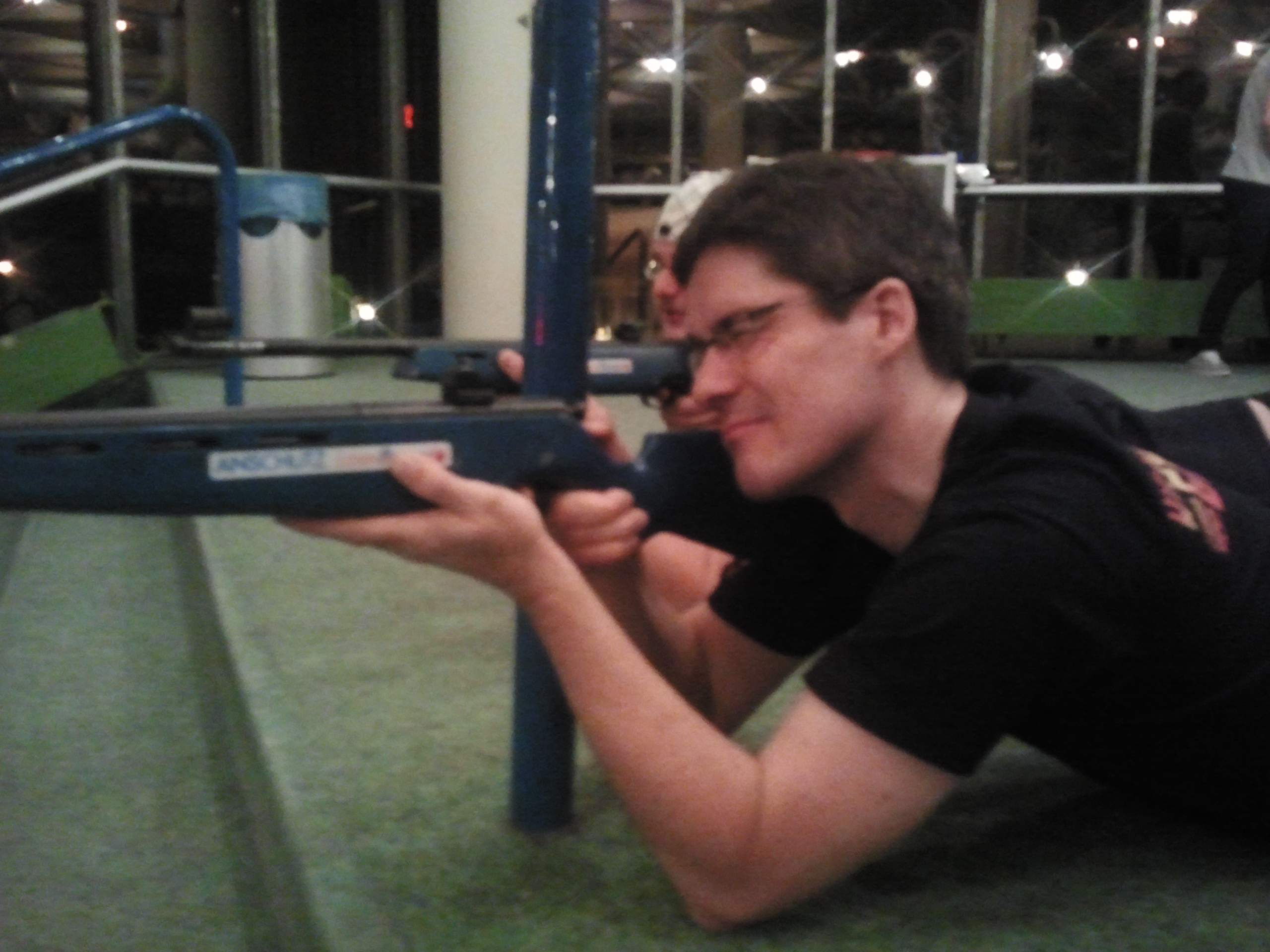 Wenn genug Zeit zwischen den Biathlon-Rennen ist, bauen wir den Schießstand vielleicht auch oben im Thekenbereich zwischendurch auf.