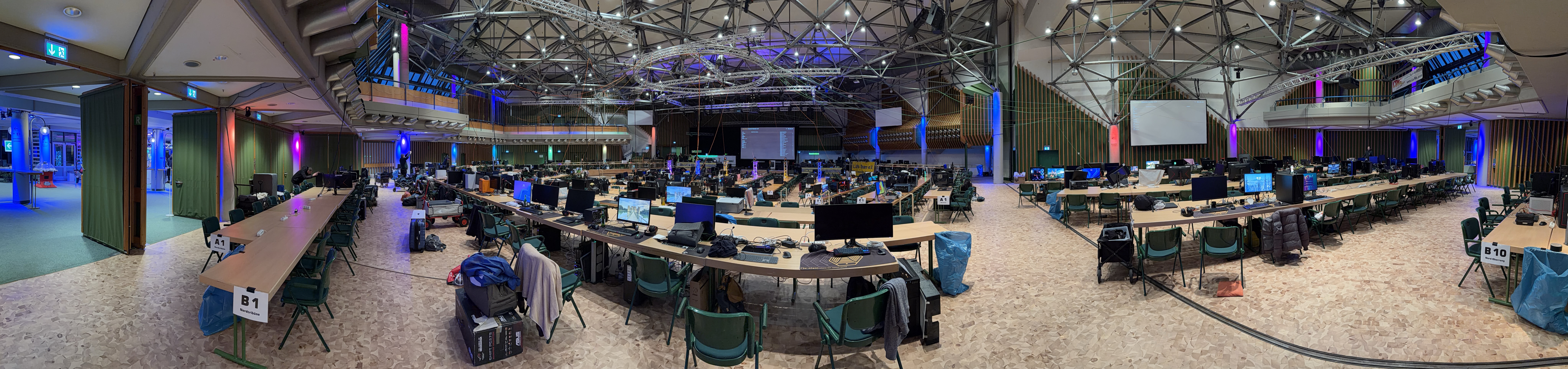 Tatsächlich geht in die Richtung auch mein einziger kleiner Kritikpunkt an einer ansonsten rundum gelungenen Party: Im Spielfeld (zumindest Reihe M/L) war dieses Jahr mit Stühlen mit Armlehnen bestuhlt, was zur Folge hatte, dass die Stühle nicht wie sonst unter die Tische geschoben werden konnten. Das hat es in den ohnehin schon sehr engen Reihen noch enger gemacht. Hier würde ich mir fürs nächste Mal wünschen, dass die Stühle ohne Armlehnen den engeren Reihen zugeteilt werden. Danke.